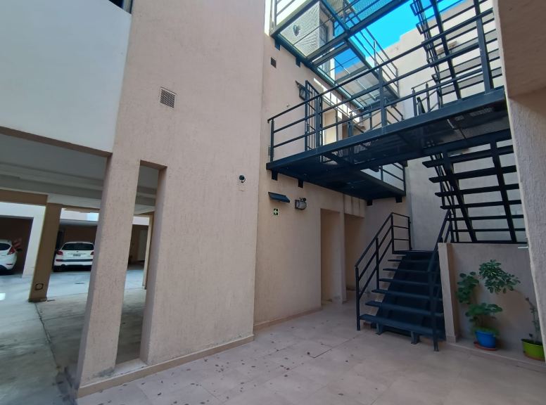 Ubicadisimo departamento en segundo piso con cochera , compuesto por living comedor, cocina con desayunador, un dormitorio con placar, baño completo y cochera para un auto, y patiecito, complejo muy seguro y tranquilo con muy buenas vías de accesibilidad,