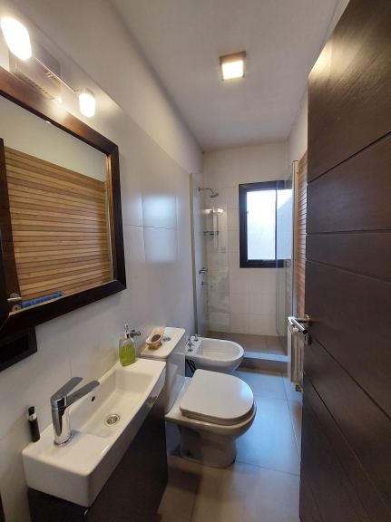 La casa está equipada con calefacción central y equipos de aire acondicionado, pisos porcelanato, aberturas DVH termoacústicas, cocina con isla y gran mobiliario y equipamiento, de excelente calidad, iluminación nocturna.